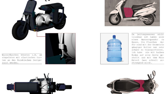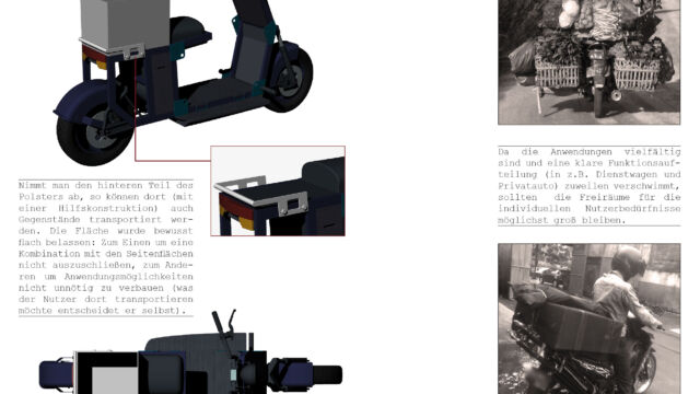 Was der Nutzer mit seinem Roller transportieren möchte entscheidet er selbst. Die dazu erforderliche Halterung kann er sich bei einem lokalen Handwerker (sehr günstig) bauen lassen.