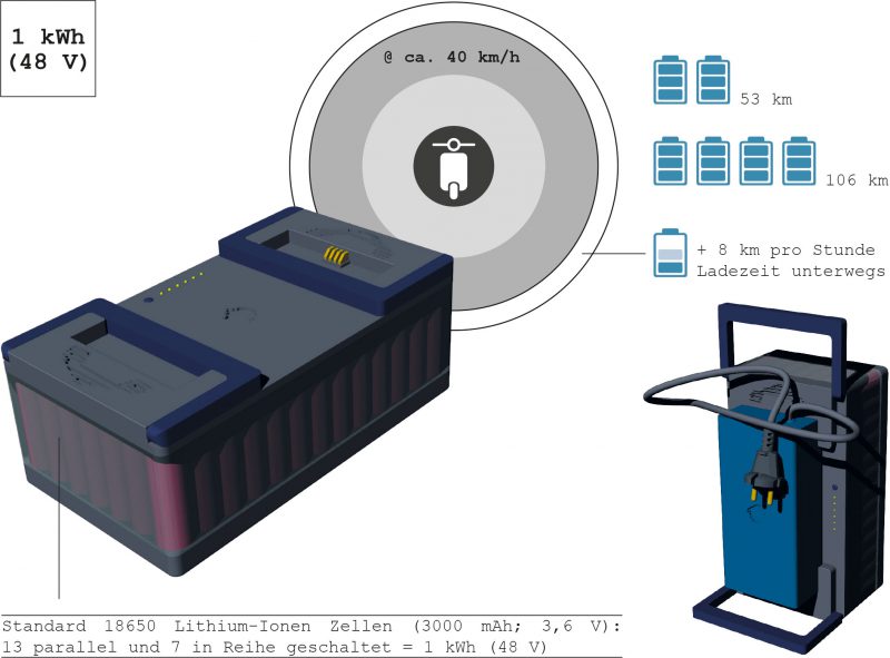 Die meisten Hersteller verbauen ihre Zellen in einem Block, wodurch dieser sehr schwer wird (13 kg wiegt bspw. der Akku des GenZe-Rollers).