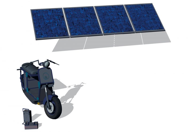 - Laden aller Akkus am Roller über Gleichstrom der Solaranlage (zu Hause)