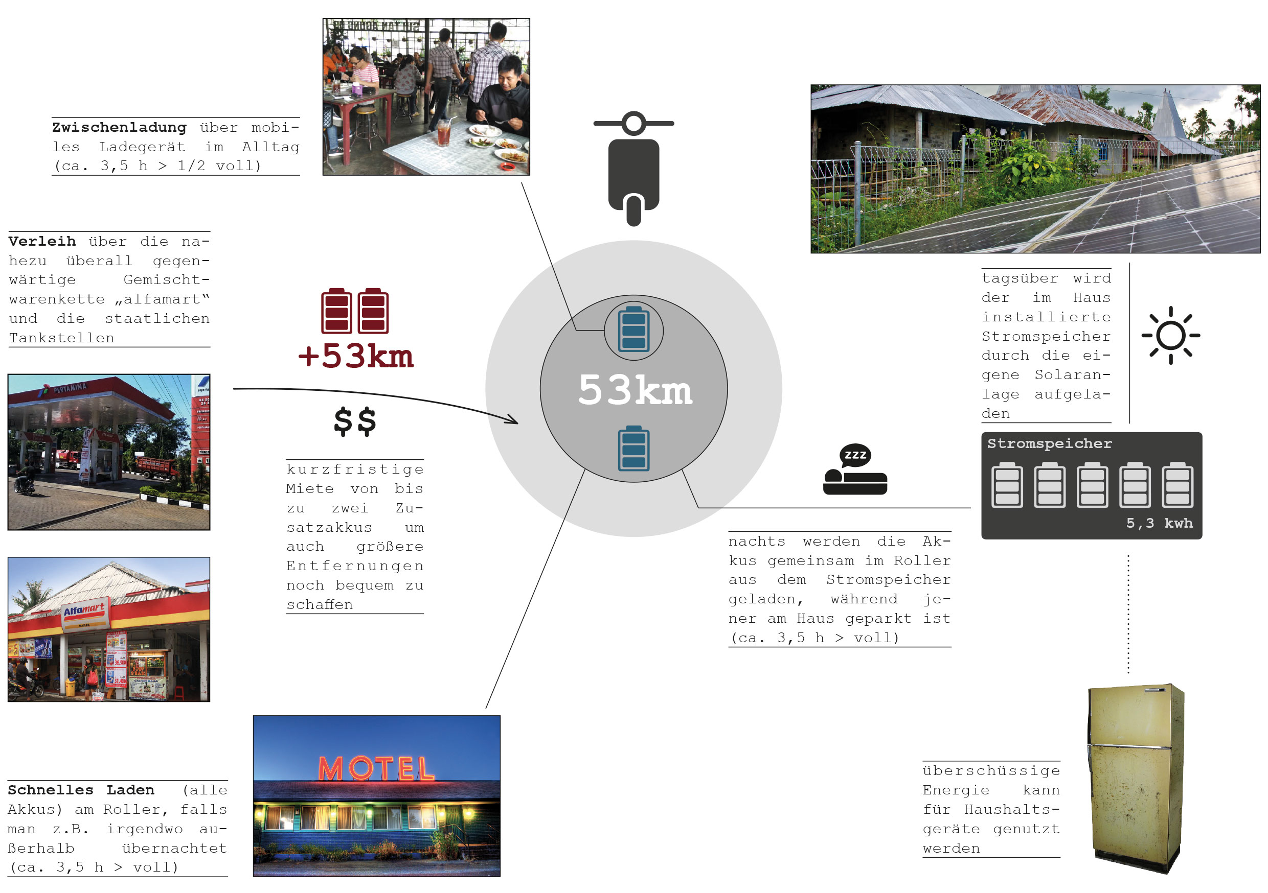 In weiten Teilen Indonesiens kommt es “regelmäßig” für einige Stunden zu Stromausfällen. In diesem Fall wird der Roller zum mobilen Stromspeicher mit dem sich diese Zeit überbrücken lässt.