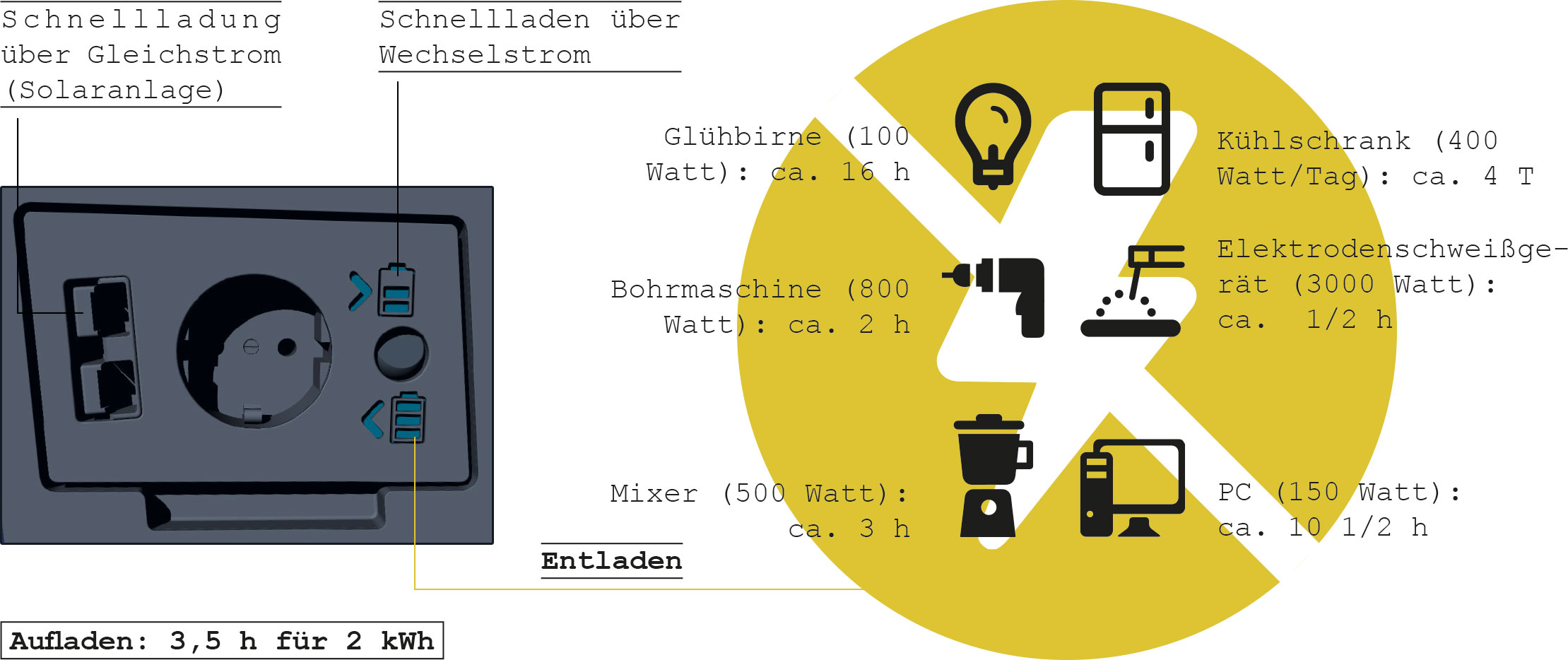 - Zwischenladung eines Akkus über das mobile Ladegerät (unterwegs)
